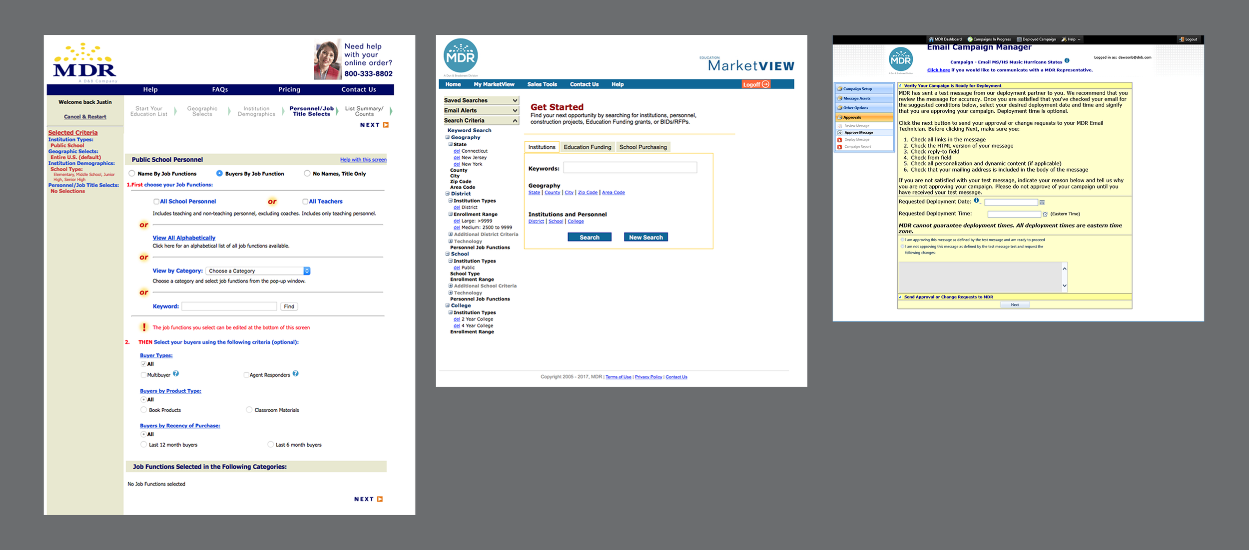 MDR’s three main tools prior to redesign, List-Builder, MarketView, and ECM